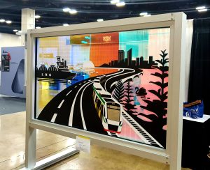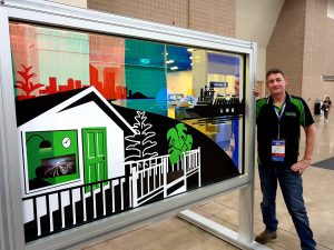 In September 2022, Brent and Chris Caithness attended the 2022 International Window Film Conference and Tint-off in San Antonio, Texas.  Pre-selected as one of 5 finalists chosen world-wide for the inaugural Decorative Window Film Competition (based on a portfolio submission of past works compiled by Chris), Brent then brought home first prize with a beautiful design incorporating digital print, computer cut graphics, and 3M Dichroic with different designs on each side of a single glass panel.