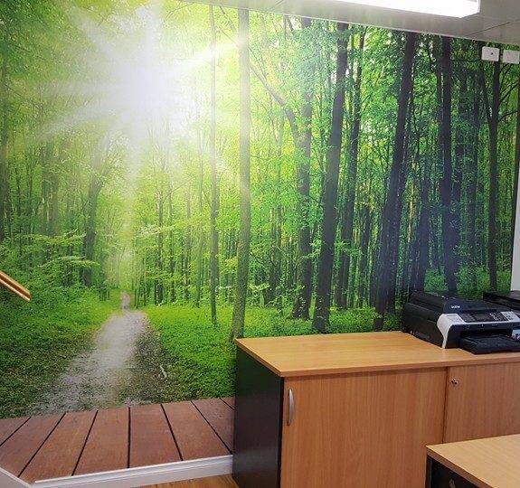 Digitally printed onto fabric feel wallpaper, with the image sourced from Shutterstock, this installation made an eye catching statement for this retail premise.