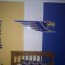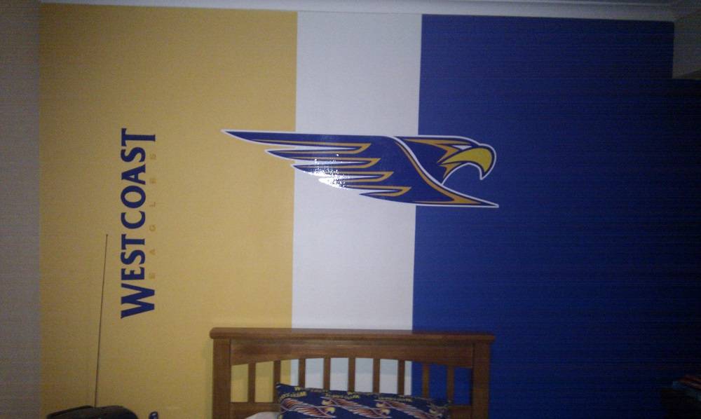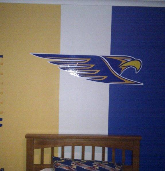 Digitally printed in-house on wall vinyl, then computer cut, this design for a custom wall sticker (on a painted wall) made a one-eyed West Coast Eagles Supporter very happy.